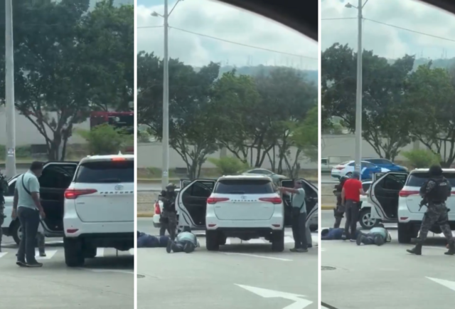 Enseguida, otros tres hombres, incluyendo al conductor y el copiloto, descendieron del vehículo de alta gama y todos fueron ordenados a lanzarse al piso para ser inspeccionados mientras el arma seguía apuntándoles; ellos fueron requisados por supuestos agentes vestidos de civil. Sin embargo, no se conocía en qué había concluido la revisión pues no hubo registro de aquello.