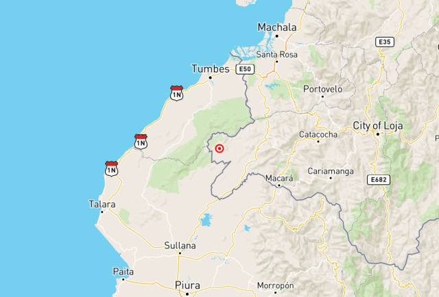 El evento ocurrió exactamente a las 22:06:01, con una profundidad de 80 kilómetros y su epicentro fue localizado a 58.77 km de Macará, en la provincia de Loja.