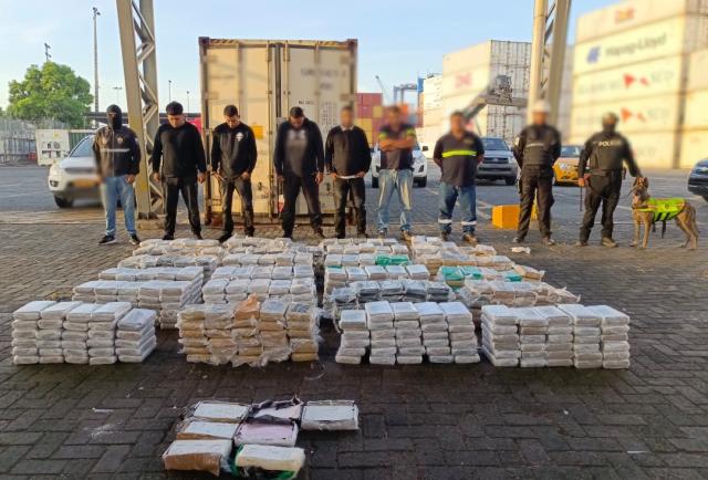 Como parte del procedimiento policial, un can realizó una revisión del espacio, detectando que allí se almacenaba un cargamento contaminado con 716.400 kilos de cocaína.