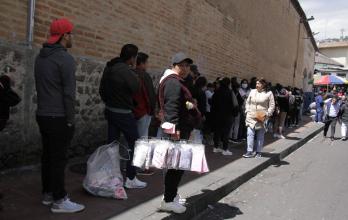 Sebastián Grefa se desplazó desde el valle de los Chillos al centro de la capital junto a su esposa y su pequeño de dos años, para conseguir un par de cajas de 50 mascarillas para niños, pero no las encontró.
