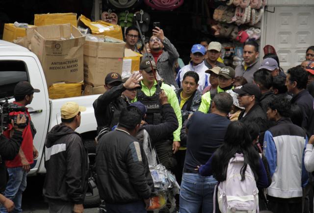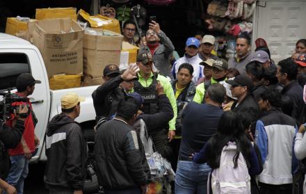 Unos metros más adelante se detuvo un contingente policial de al menos 15 agentes, acompañados de funcionarios de la Intendencia de Pichincha. Ellos ingresaron a un centro comercial donde se presumía que vendían mascarillas a precios elevados.