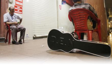 Los artistas tienen que estar ‘pilas’ en las madrugadas con los pillos que merodean las calles Lorenzo de Garaycoa y Sucre, para robarles los instrumentos. Ellos los encandenan a las sillas.