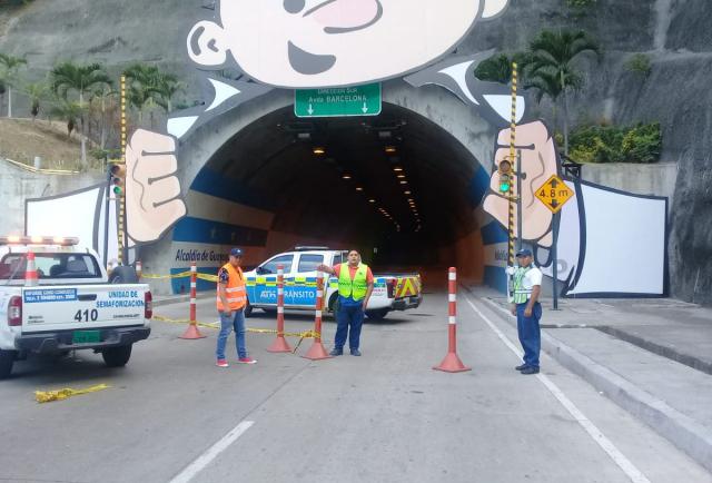 El cierre del túnel Este, es en el sentido sur - norte, de la avenida Barcelona - vía a Daule. La Autoridad de Tránsito Municipal cerrará el paso al tránsito vehicular desde el redondel de la ciudad deportiva Carlos Pérez Perasso, para desviarlo hacia la avenida Rodríguez Bonín.