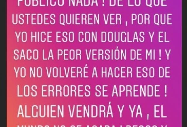 A través de su cuenta de Instagram subió varias historias que demostraban lo mal que la está pasando y varios mensajes para Ronald.