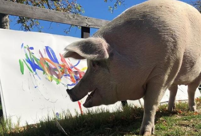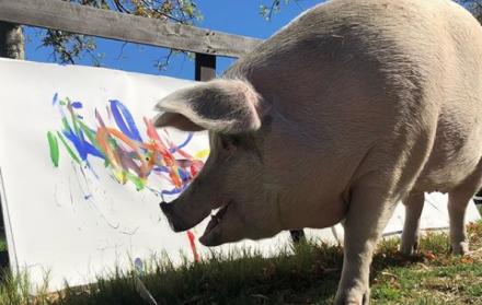 Con 3 años de edad y 1.000 libras de peso, una cerda de Sudáfrica ha conquistado las redes sociales y al mundo del arte por su habilidad con los pinceles. Pigcasso —nombre en honor al pintor Pablo Picasso— vende sus obras de arte por miles de dólares.