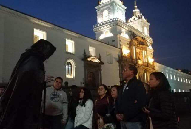 Se trata de un recorrido de leyendas quiteñas que se realizará por algunos puntos del Centro Histórico de Quito. Entre los cuentos que presenta el colectivo en su ruta teatralizada, está la de la calavera de San Roque.