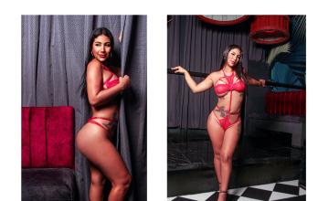 Para las más arriesgadas, el set rojo pasión es un arma letal: encaje, tiras, transparencias y la actitud de quien sabe que el fuego no se apaga con la maternidad.