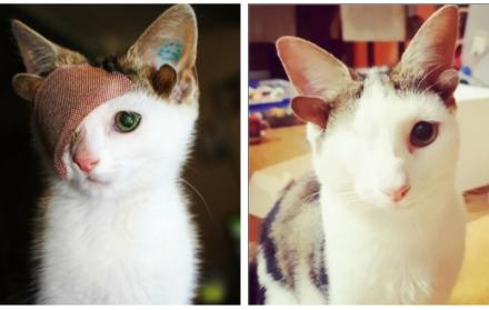Frankie, el gato con cuatro orejas y un solo ojo