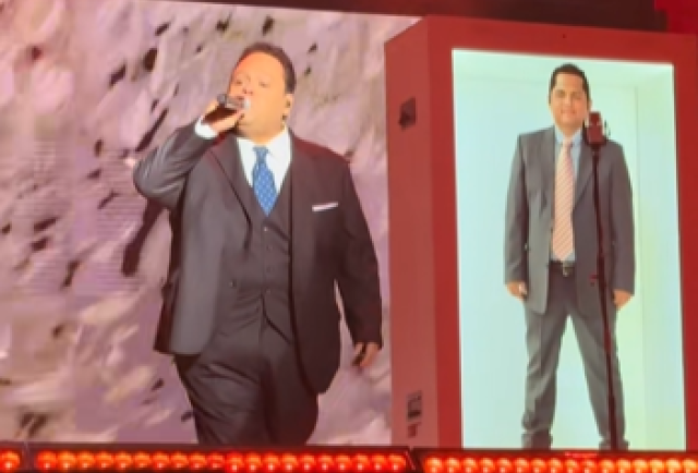 Uno de los instantes más conmovedores de la velada ocurrió cuando Julio Jaramillo Jr. subió al escenario para interpretar, junto al holograma de su padre, la canción 'No me toquen ese vals'.