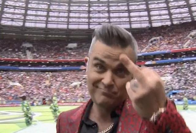 Cuando interpretaba el título Rock DJ en el césped del estadio Luzhnikí de Moscú, la estrella del pop británico mostró ostensiblemente su dedo corazón ante la cámara. Acababa de cantar la frase “I did this for free” (hice esto de forma gratuita), que no figura en las palabras originales de la canción.