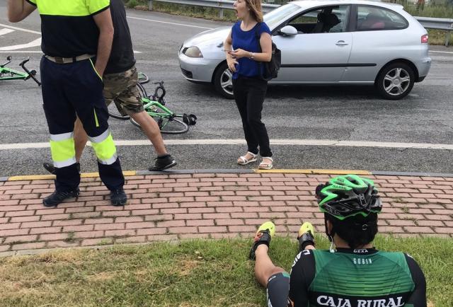 Durante un entrenamiento en España, el ciclista Jefferson Cepeda y su compañero Esteban Guerrero, ambos de Caja Rural, fueron atropellados por un auto. Solo sufrieron golpes leves, por suerte.