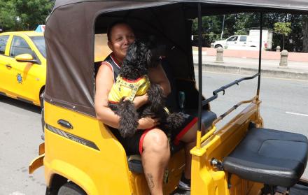 Así vivió el Clásico del Astillero una hincha de Barcelona y su perrita Luna en tricimoto