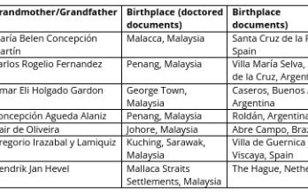 En ese mismo documento, se hizo un cuadro comparativo en donde se puede ver que las personas que estos jugadores habían tomado como ascendencia para justificar su nacionalización, en realidad tenían otro lugar de nacimiento totalmente distinto al señalado.