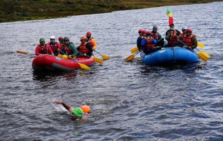 La meta no era sencilla. Este cuerpo de agua, rodeado de misticismo y naturaleza agreste, es considerado uno de los más fríos de Ecuador, con temperaturas que oscilan entre 2 y 22 grados.