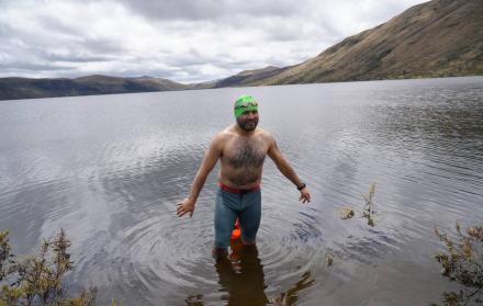 El pillareño nadó 4 kilómetros en el helado Pisayambo sin traje especial, enfrentando temperaturas de hasta 2 grados y fuertes corrientes internas.