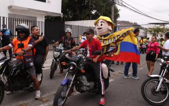 Los clientes comenzaron a llegar desde las 09:00 y entre ellos se destacó Bananerito, el famoso hincha de Orense SC, que no dudó en subirse a la moto con su bandera para llegar al estadio por un dólar.