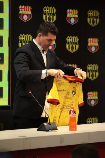 Sereno, firme y vestido con su característico saco, Ismael Rescalvo fue presentado como nuevo director técnico de Barcelona Sporting Club en una rueda de prensa que tuvo lugar en el estadio Monumental. El acto se desarrolló la mañana del lunes 23 de junio ante más de 20 medios de comunicación.