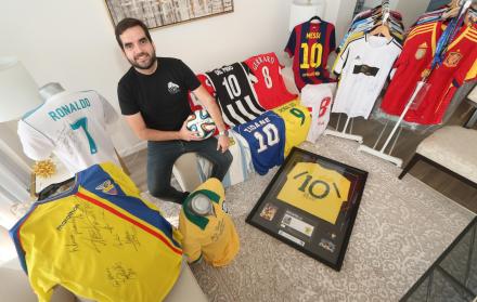 Juan Pablo Béjar, arquitecto guayaquileño, tiene los zapatos de Messi y Ronaldinho firmados y hasta camisetas autografiadas por Pelé y Cristiano Ronaldo