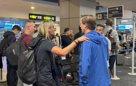 Casi mientras respondía a EXTRA, Martin se percató de la presencia de Sebastián Beccacece, antes de embarcarse al avión que los enrumbaría a Estados Unidos, y lo saludó con un abrazo.