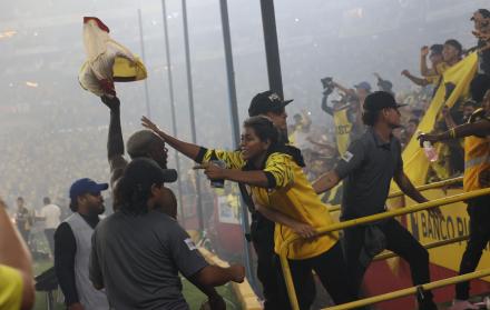 Pese a la dolencia, Caicedo se mostró animado al final del compromiso. Celebró con la hinchada amarilla y hasta se animó a cantar junto a los aficionados.