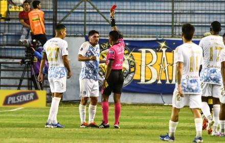 El árbitro central expulsó al volante azul por una entrada fuerte al delantero de Delfín, Justin Alman