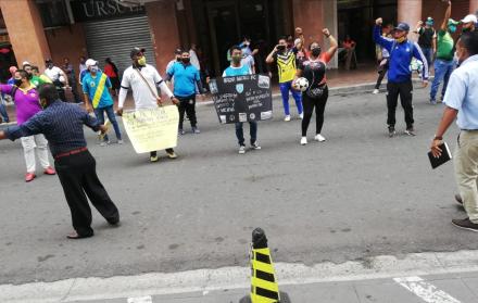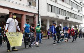 Fueron 200 entrenadores los que participaron en la manifestación con pelota en mano. Recorrieron desde la Plaza San Francisco de Guayaquil hasta el palacio de la Gobernación del Guayas. Ellos insisten en que requieren volver a sus actividades lo más pronto posible.