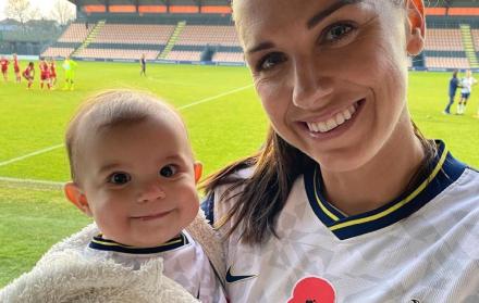 La guapa jugadora de Estados Unidos, que actúa en el Tottenham de Inglaterra, llevó a su pequeña a la cancha.
