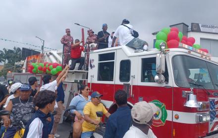 Una vez que recorrió las principales calles de su natal Santo Domingo en un homenaje organizado por el municipio, este jueves 17 de julio, el seleccionado ecuatoriano Moisés Caicedo se bajó del vehículo de los bomberos y compartió más de cerca con la gente que lo vitoreaba.