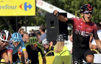 Carapaz, de 27 años, se llevó la etapa en 5:04.54, entrando por delante de italiano Diego Ulissi (UAE) y del francés Rudy Molard Groupama (FDJ), segundo y tercero, respectivamente.