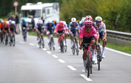 Pese a que tuvo que cambiar de bicicleta cuando se encontraba en el grupo de líderes de la jornada, a ocho kilómetros de la meta, Carapaz se recuperó y con un gran esfuerzo pudo conectar nuevamente con el pelotón.