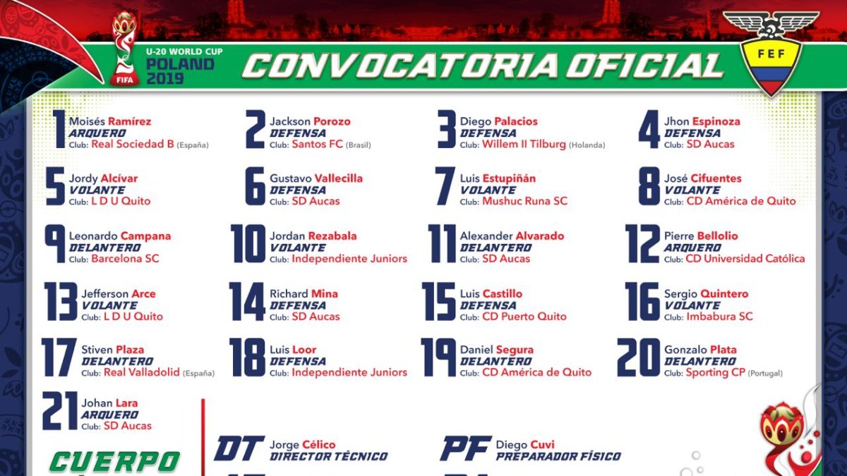 Entre los rostros nuevos de la Tri están Luis Estupiñán (Mushuc Runa), Jefferson Arce (América), Luis Castillo (Independiente Junior) y Luis Loor (Puerto Quito).