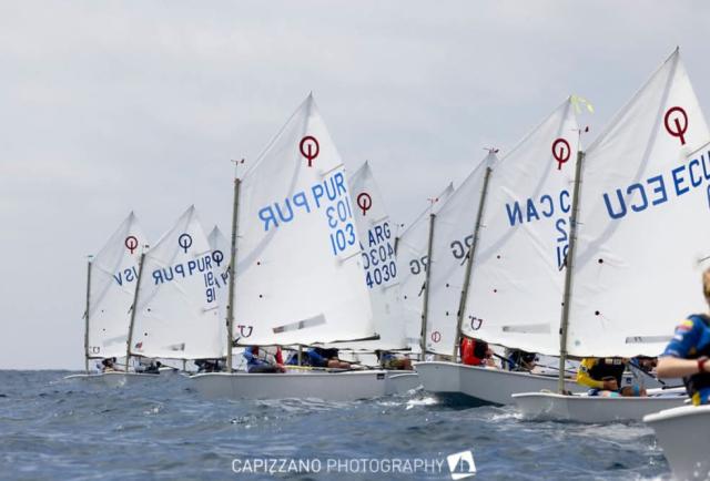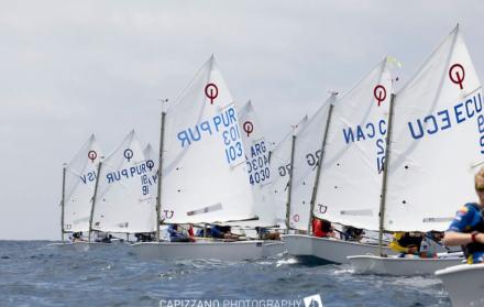 Al sonido de un claxon, 180 jóvenes veleristas de 14 países se prepararon en Salinas para salir en sus pequeñas embarcaciones. Antes de entrar al mar realizaron calentamientos físicos y recibieron indicaciones de sus entrenadores. En el muelle del Yacht Club de Salinas, padres y familiares alentaron con gritos y aplausos.