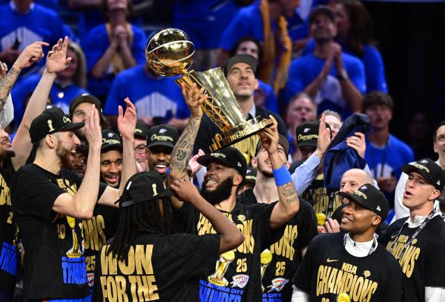 🏆 Por primera vez en la historia de la franquicia, Oklahoma City Thunder gritó CAMPEÓN en la #NBAxESPN y así levantó el mítico trofeo Larry O'Brien.