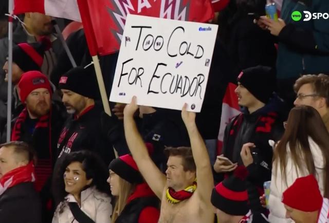 "Too cold for Ecuador": El viral cartel de un hincha canadiense contra la Tri