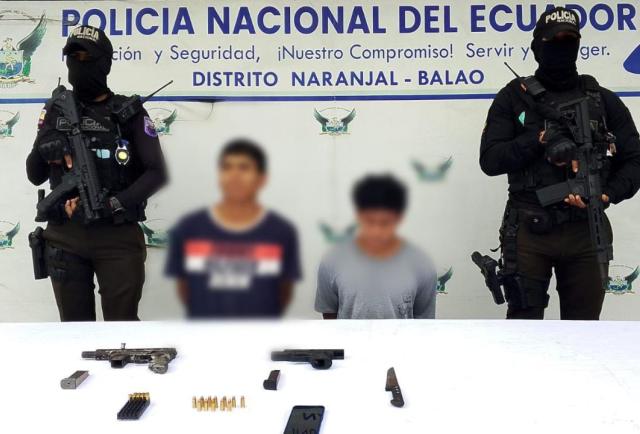 Dos sujetos aprehendidos en el cantón Naranjal, conocidos con los alias de Psicosis y Negro, fueron procesados por tráfico ilícito de armas de fuego. Sus capturas se realizaron durante un patrullaje policial ejecutado el martes 11 de noviembre en la vía a los Shuar, en el recinto Jaime Roldós, de aquella localidad de la provincia del Guayas.