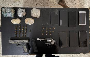 Durante la intervención se decomisaron dos armas de fuego, nueve teléfonos celulares, cartuchos de diversos calibres y sustancias sujetas a fiscalización. Todos los elementos fueron puestos a órdenes de la autoridad competente como parte del proceso investigativo.