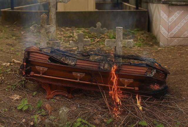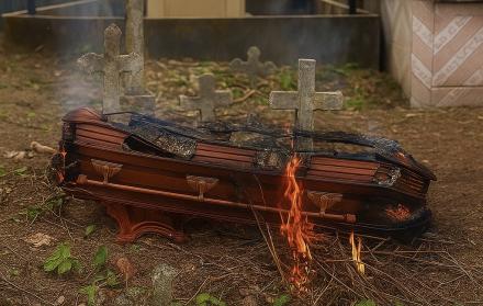 Tras abrirlo, se habrían llevado restos humanos en una funda. Luego, como si se tratara de un rito siniestro, prendieron fuego al féretro, lo que provocó una densa columna de humo que alertó a los vecinos.