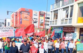 Delegaciones de trabajadores de los 22 municipios de Manabí, junto a representantes de la Unión Nacional de Educadores (UNE) y otras organizaciones sociales, protestaron por la crítica situación económica que atraviesan los cabildos y sus empleados.