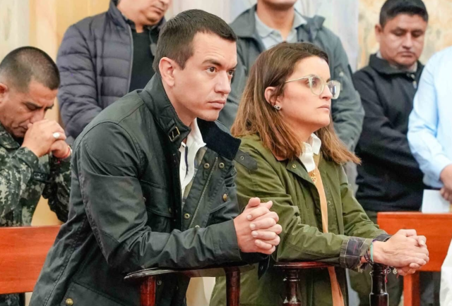 El presidente Daniel Noboa y la vicepresidenta Pinto acudieron a la iglesia de La Merced