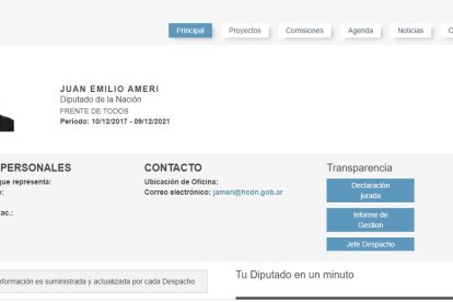 Aquí, la ficha oficial de Ameri en la página oficial de la cámara de Diputados, página que ahora ya no está disponible: