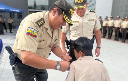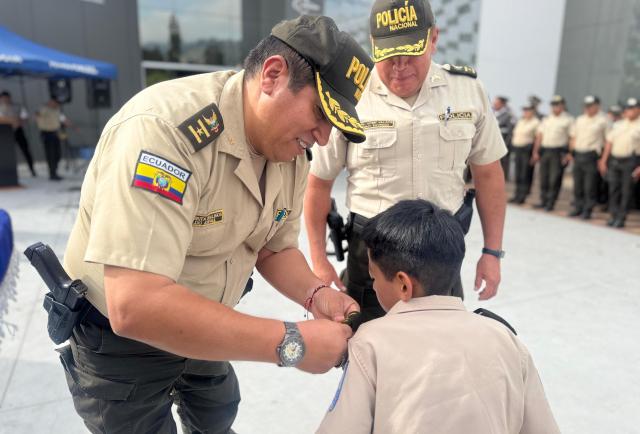 Entre aplausos y honores, Justin vivió su sueño de ser policía en Ambato