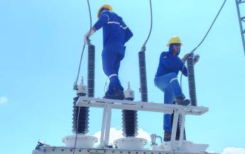 Equipos de CNEL trabajan en el desmontaje del transformador averiado, cuya falla interna interrumpió el suministro eléctrico de la planta de tratamiento de agua San Mateo.