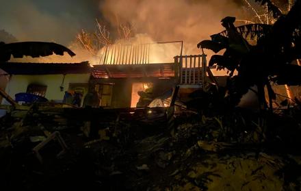 De acuerdo con el reporte del Cuerpo de Bomberos de Esmeraldas, el siniestro se registró pasadas las 21:00 del miércoles 9 de octubre. Las llamas avanzaron con rapidez y, en medio del fuego, los cilindros de gas doméstico que se encontraban en el interior explotaron. Dos fuertes detonaciones sacudieron el sector, despertando la alarma y el miedo de los moradores.