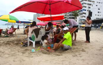 “Venimos por hoy a la playa, luego regresamos a Guayaquil para disfrutar de los conciertos por las fiestas de independencia”, comentó entusiasmada Johanna Pazmiño, quien llegó con su familia a Salinas.