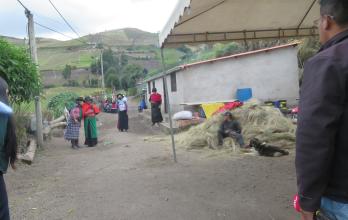 Comuneros levantan una carpa blanca y disponen paja sobre el suelo para contrarrestar el intenso frío nocturno que baja desde las lomas. La vivienda está situada en una ladera empinada, desde donde se observa la otra casa, la de la familia del primito, ubicada unos metros más arriba.