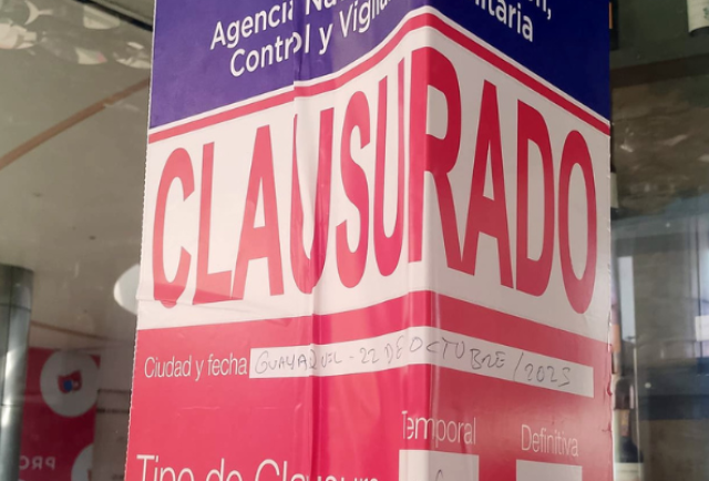 La Agencia Nacional de Regulación, Control y Vigilancia Sanitaria (Arcsa) clausuró la noche de este 22 de octubre de 2025 un restaurante ubicado en la parroquia La Puntilla, cantón Samborondón, tras detectar graves incumplimientos en las normas de higiene y salubridad.
