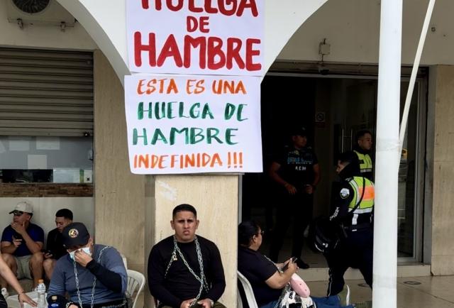 Zambrano asegura que lo que están viviendo es insostenible. “Hemos gastado nuestros ahorros, nos hemos endeudado, y algunos compañeros trabajan de albañiles y en otras actividades en sus horas libres para poder llevar algo a sus casas. Hay padres que no pueden comprar pañales, ni pagar las pensiones escolares. Es lamentable”, relató, mientras a su lado uno de sus compañeros se mostraba encadenado y a la vez agotado.