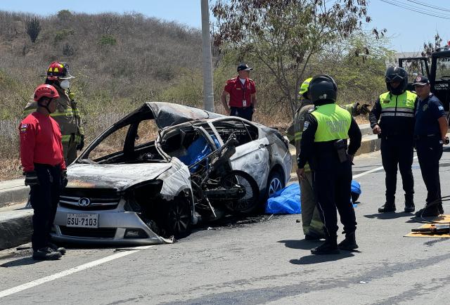 Julio Roca, jefe del Cuerpo de Bomberos de Manta, informó que ambos vehículos impactaron bajo circunstancias que se investigan. En la escena se pudo observar como la motocicleta quedó incrustada en la parte posterior del automóvil. La colisión provocó la explosión del tanque de combustible de la moto, lo que contaminó el habitáculo del vehículo e inició un incendio de grandes proporciones.