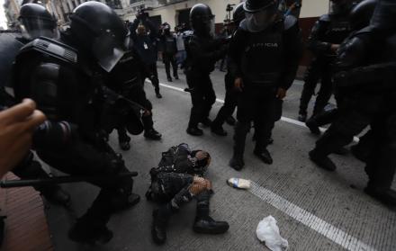 Los manifestantes llegaron hasta la intersección de las calles Chile y Guayaquil, una de las entradas al Palacio de Carondelet. En este lugar, generalmente suele haber desmanes porque los protestantes quieren ingresar; sin embargo, hubo tranquilidad.