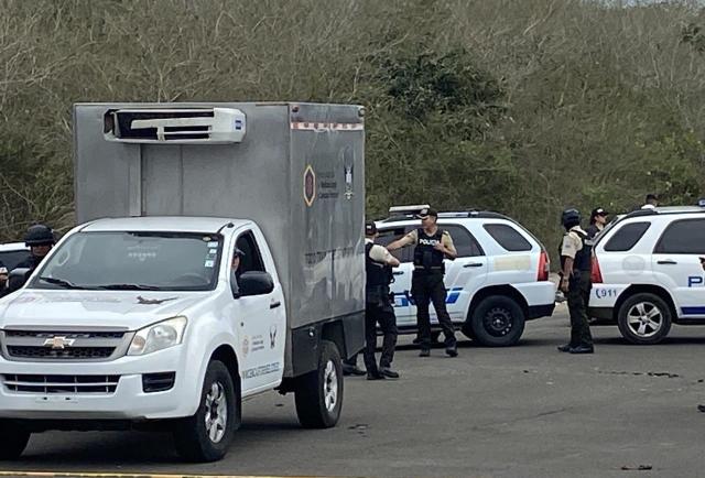 El coronel José Luis Erazo, jefe policial del distrito Manta, informó que en el sitio se levantaron varios indicios balísticos de arma de fuego calibre 9 milímetros. Los cuerpos fueron trasladados al Centro Forense para la respectiva autopsia.